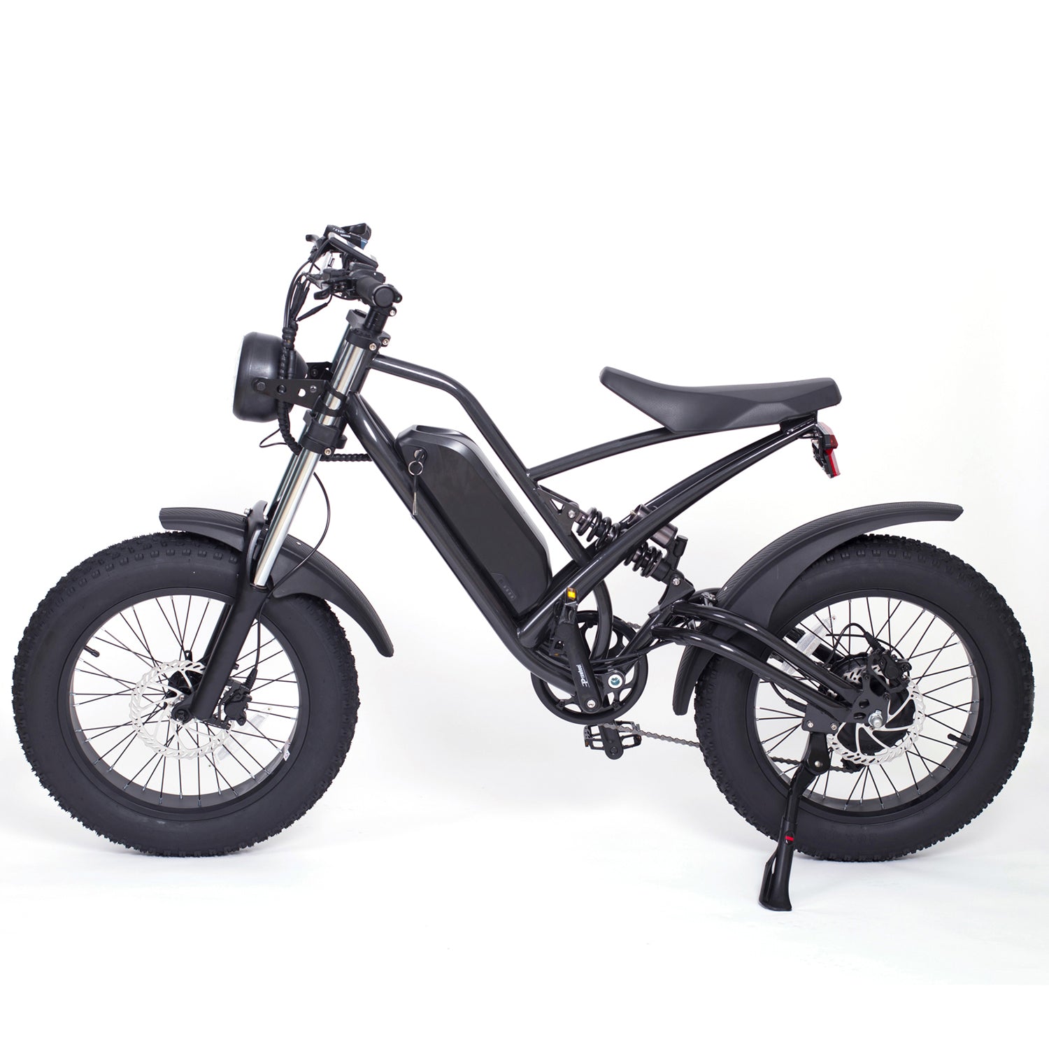Configuration: Front and Rear Shock Absober will give you more comfortable riding experience. Front and rear disc brake system effectively reducing the braking distance. Shimano transmission system is more durable and can shift the gears more smoothly. 20*4.0 inch fat tires make cycling more stable to suit all road conditions such as snow, road, beach and mountain road.
