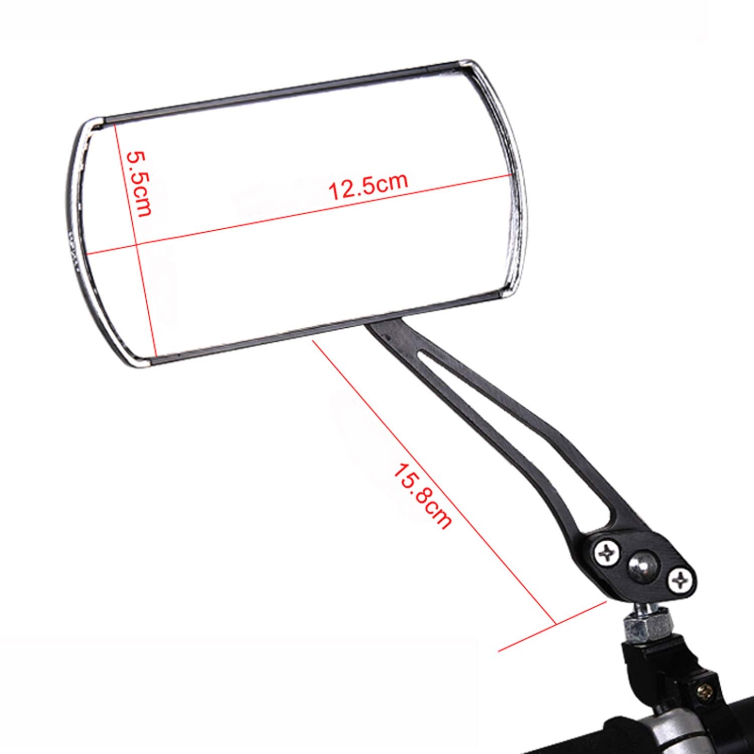 The size of the mirror is 12.5*5.5cm, can 360 degree adjustment which can give you a wide vision.